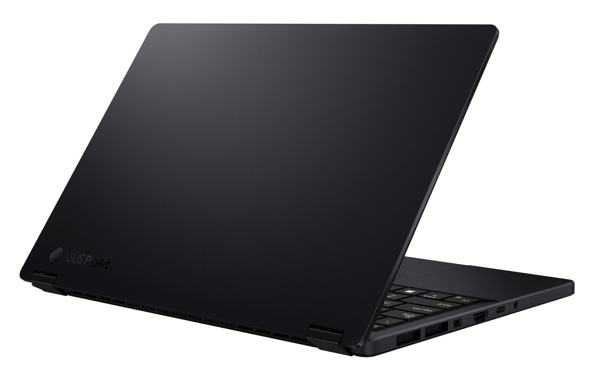 Autre vue du châssis : pratique pour se faire une idée de l’encombrement et du style (aluminium, finition sobre) du ProArt PX13 OLED PROART-GOPRO-HN7306EAC.