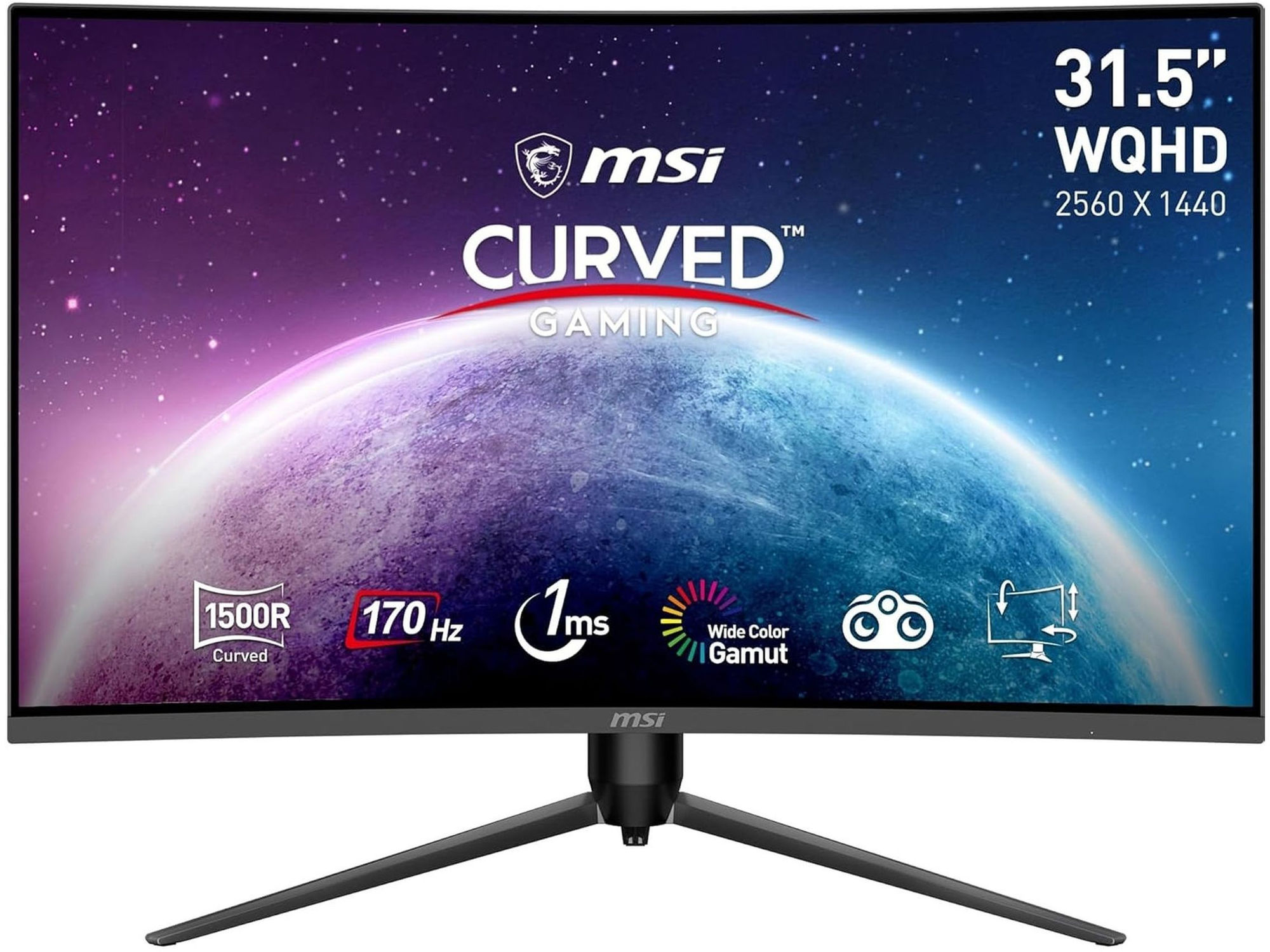 ▸ Points forts : combo QHD + 170 Hz + Adaptive-Sync, dalle VA contrastée, courbure 1500R, pied ergonomique (hauteur / inclinaison / rotation).