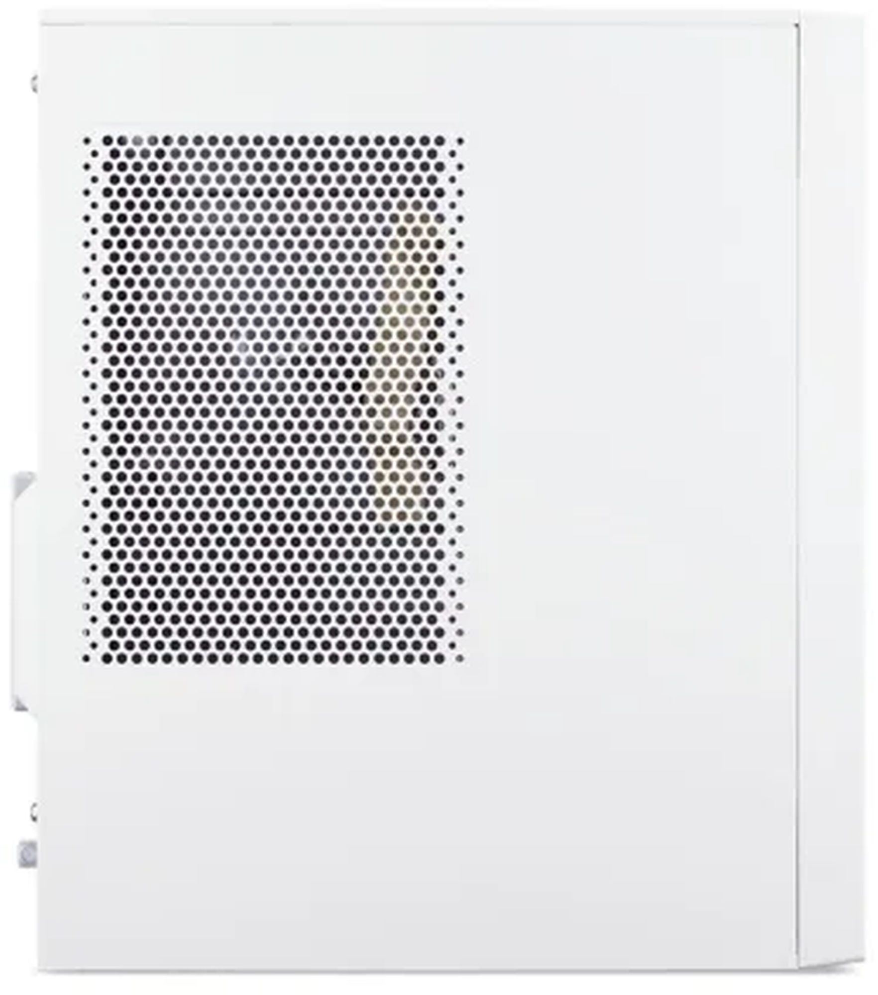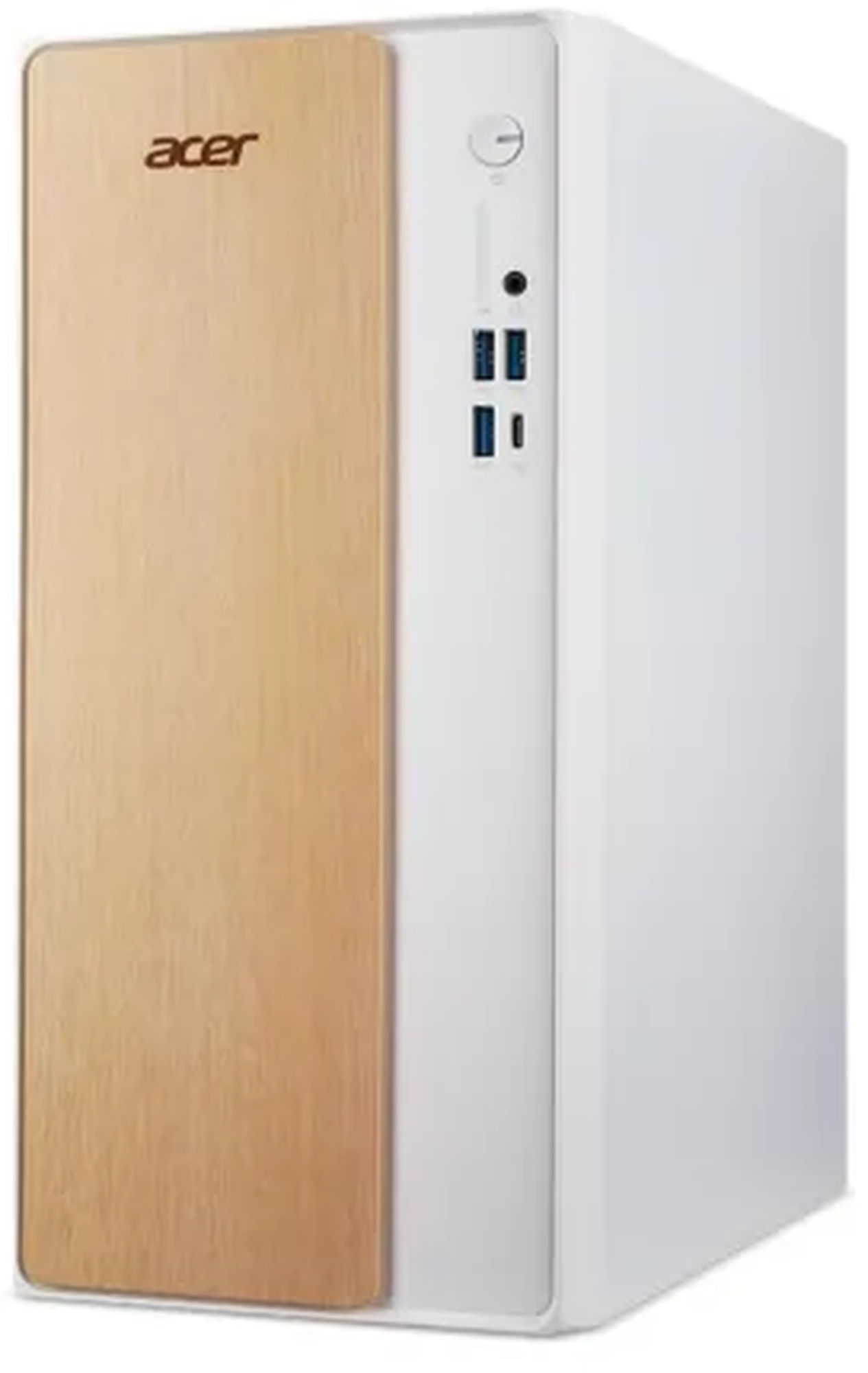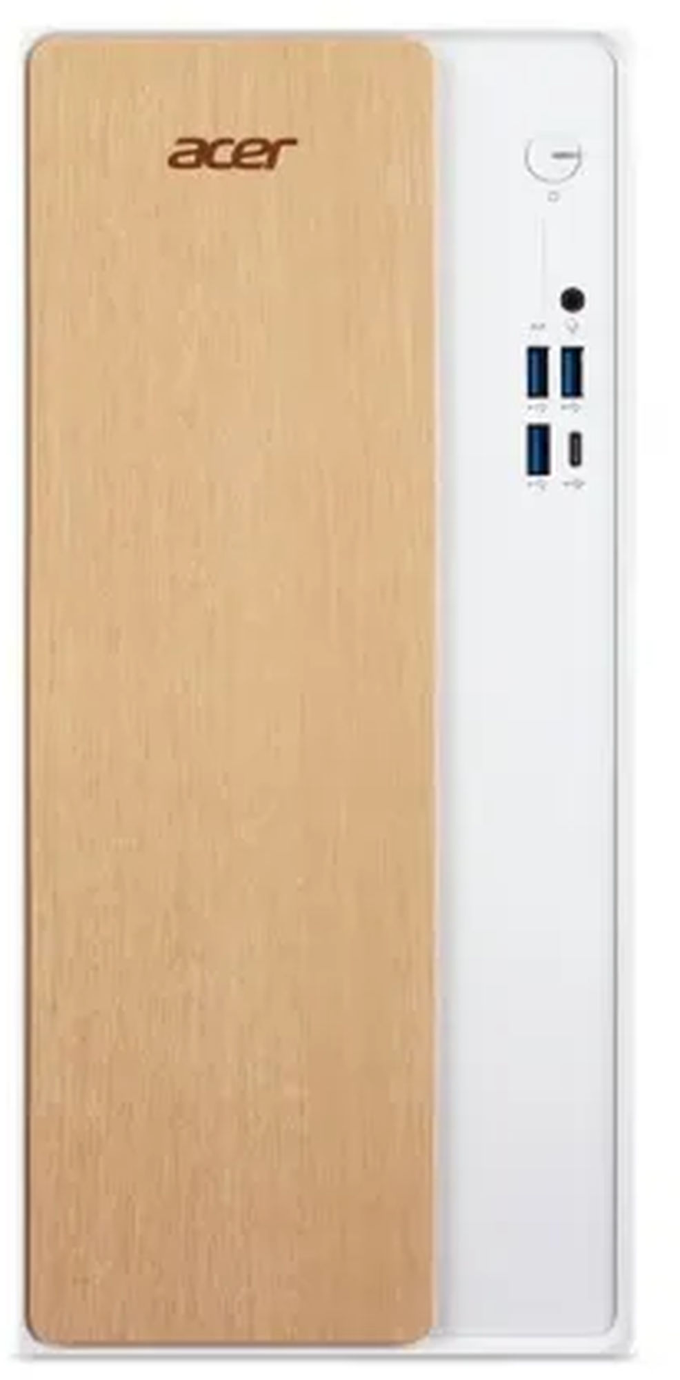 C’est l’un des aspects les plus intéressants de cette tour. Sur le papier, le boîtier annonce une composition métal, et visuellement l’Acer Aspire TC Pro TC102-H610D5 se démarque des tours gamer noires très agressives avec une robe blanche et une façade au rendu chaleureux qui adoucit l’ensemble. Cela lui permet de mieux se fondre dans un bureau, un salon ou une pièce de travail qu’un châssis gaming classique. Maintenant, il faut rester lucide : sur la famille Aspire TC, la presse décrit plutôt un boîtier pratique, compact et visuellement soigné qu’une construction premium de passionné. Autrement dit, la finition est agréable pour un PC prémonté grand public, mais on n’achète pas ici une tour pour son luxe de fabrication ou pour son potentiel de tuning. C’est un design de compromis : plus élégant que beaucoup de préassemblés, mais pensé d’abord pour être simple à vivre et à produire à coût maîtrisé.