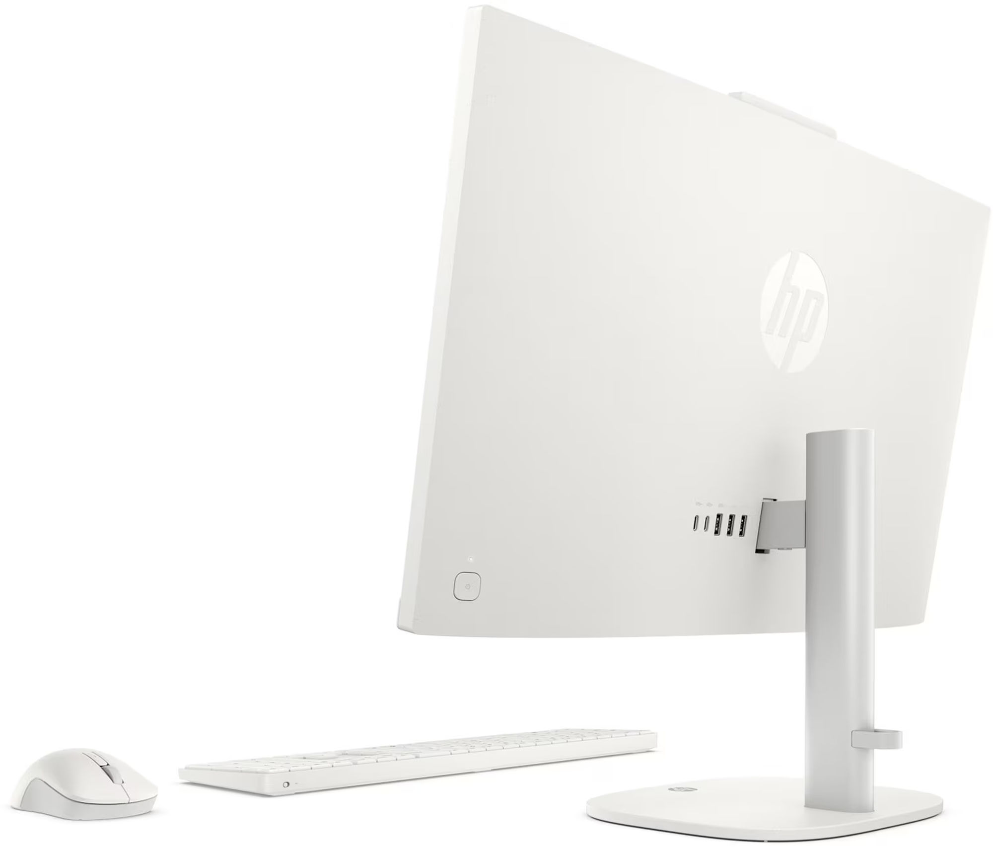 Visuellement, le HP All-in-One 24-cu0003nf joue la carte de la sobriété moderne : châssis blanc, lignes propres, écran fin, webcam escamotable et encombrement réduit. C’est typiquement le genre de PC de bureau HP qui cherche à remplacer une tour + écran + câbles visibles par un poste beaucoup plus simple à intégrer dans un salon, une chambre ou un coin télétravail. La fiche indique une composition en plastique, ce qui rappelle qu’on n’est pas sur un produit premium au sens matériaux nobles, mais plutôt sur une machine bien présentée et fonctionnelle.