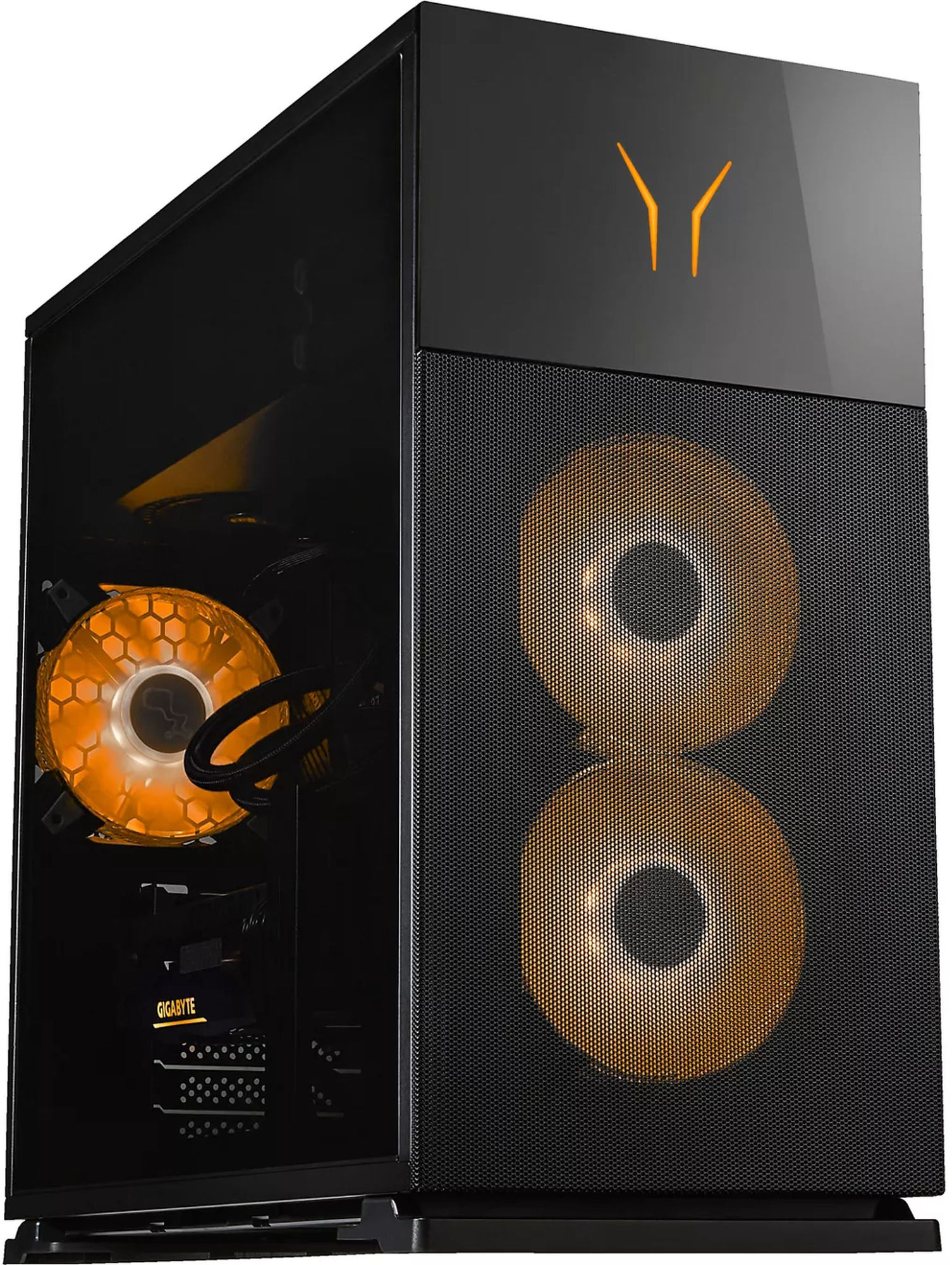 Visuellement, le boîtier assume complètement son ADN gamer : façade travaillée, éclairage marqué, panneau latéral vitré et présence assumée sur le bureau. C’est un vrai plus si vous aimez les configurations qui participent au décor, un peu moins si vous recherchez une tour totalement neutre ou quasi invisible.