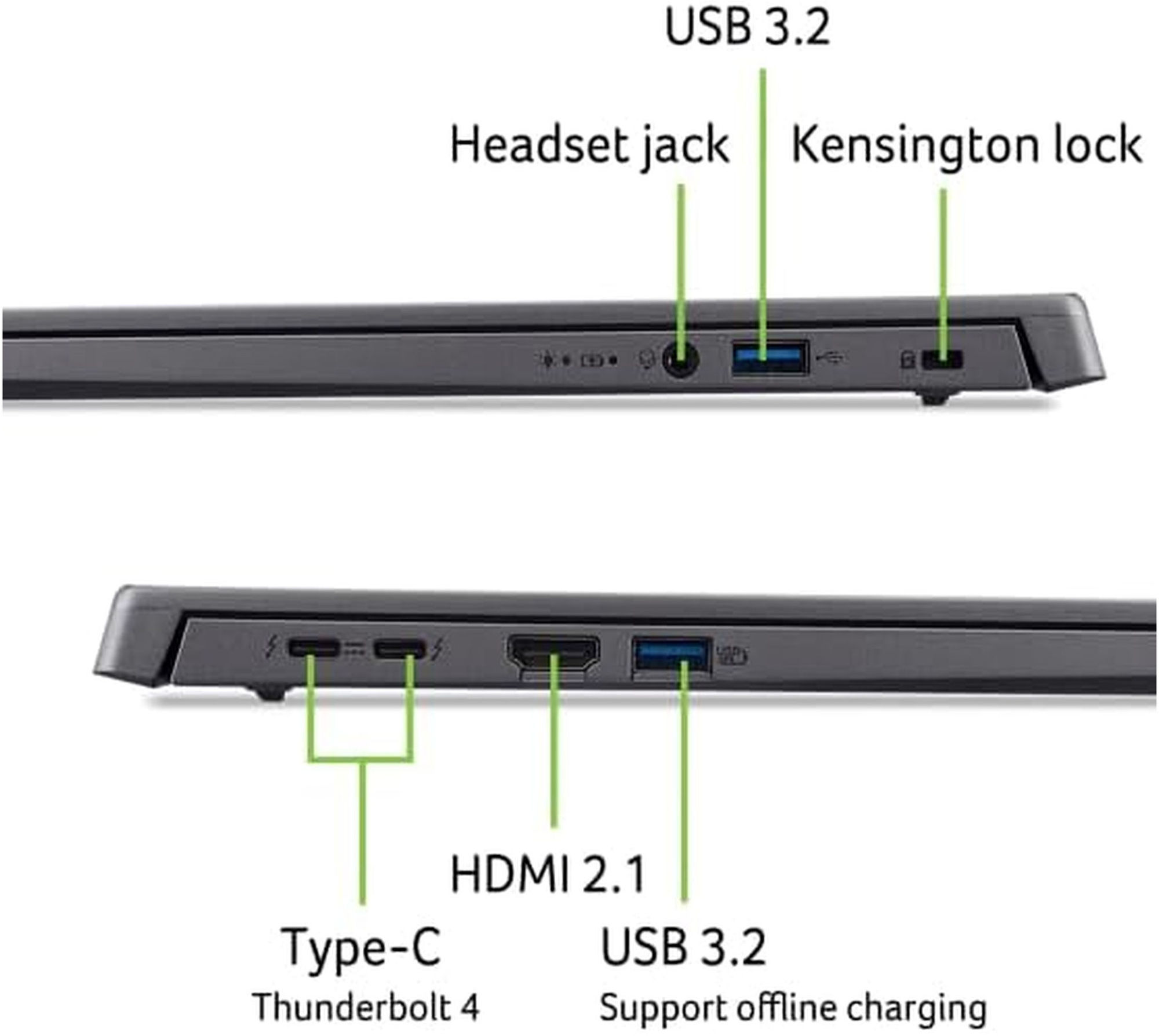 Le PC fixe de chez Acer propose 2 ports USB-C. Un des ports USB-C exploite également les fonctionnalités Thunderbolt d'Intel offrant des vitesses de transfert plus élevées que la norme USB.