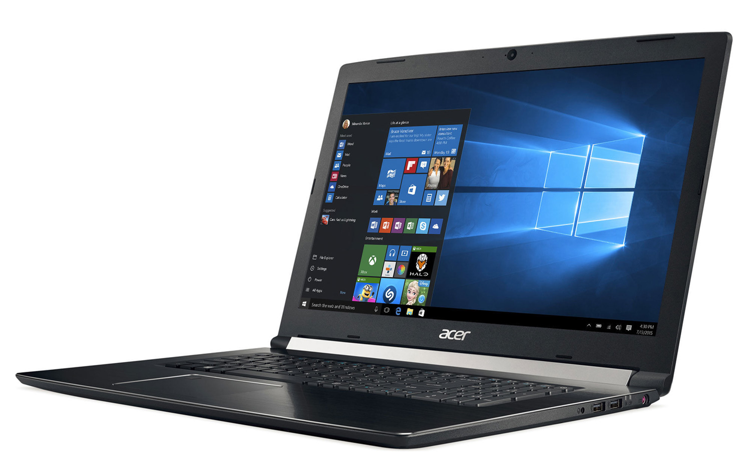 Le PC Acer Aspire 7 A717-72G-584E possède une taille d'écran de 17.3 pouces équivalent à une diagonale de 43,94 cm.