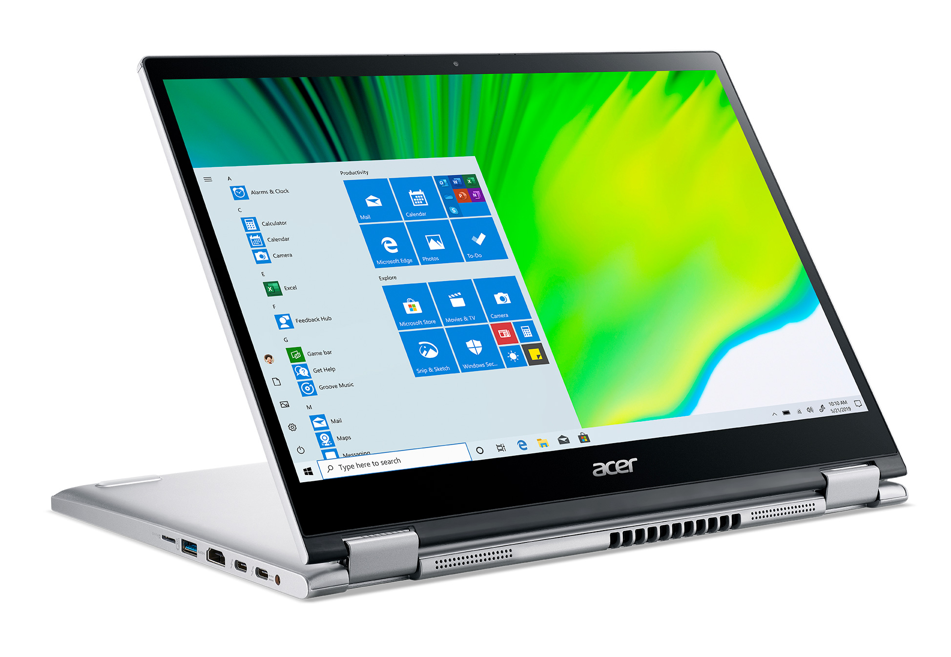 Le PC fixe de chez Acer propose 2 ports USB-C. Un des ports USB-C exploite également les fonctionnalités Thunderbolt d'Intel offrant des vitesses de transfert plus élevées que la norme USB.