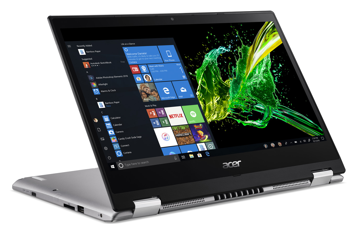 Le PC Acer Spin 3 SP314-53GN-542C possède une taille d'écran de 14.0 pouces équivalent à une diagonale de 35,56 cm.
