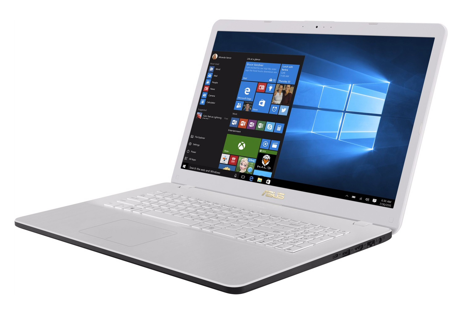 Équipé d'une webcam de seulement 0.3 Mpx, cet ordinateur portable vous offre la possibilité de recevoir ou de passer des appels vidéo lors de vos déplacements. L'appareil propose aussi une connectivité Wi-Fi 802.11 b/g/n pour surfer sur Internet à grande vitesse. La puce Wi-Fi gère également la technologie d'affichage sans-fil Wireless Display (WiDi) pour partager en quelques clics vos contenus multimédia (films, jeux, présentations) sur votre TV compatible. Le module Bluetooth 4.1 est également de la partie pour facilité la communication avec vos périphériques (souris sans-fil, smartphone, etc.). Son clavier chiclet à touches séparées est accompagné d'un large pavé numérique dédié pour un plus grand confort, on regrette cependant l'absence de rétro-éclairage utile lorsque les lumières sont éteintes.