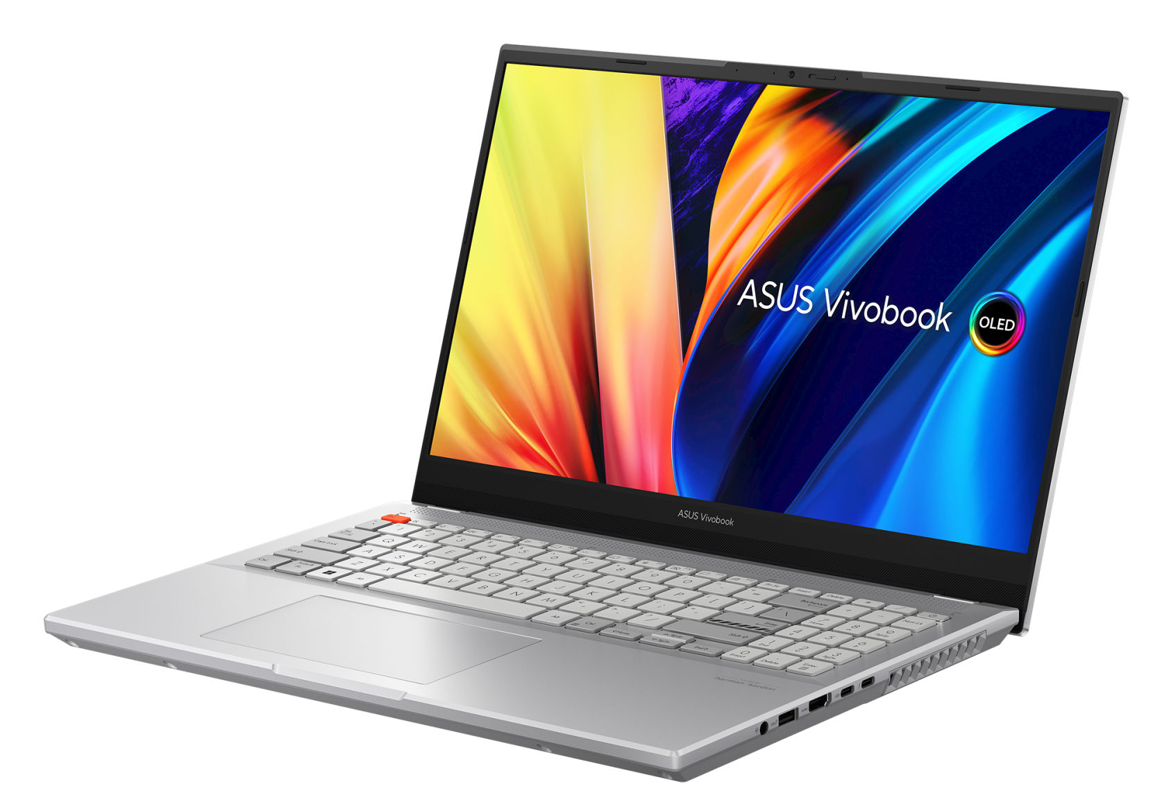 Asus utilise sur cette référence une dalle OLED avec un taux de rafraîchissement de 120 Hz. La luminosité maximale est annoncée à 600 cd/m². L'écran propose des angles de vision de 178°. Il supporte le profil colorimétrique sRGB à 133%. La dalle couvre également l'espace colorimétrique plus étendu du DCI-P3 à 100% pour un rendu parfait des couleurs. L'écran est également certifié VESA DisplayHDR 600 True Black.
