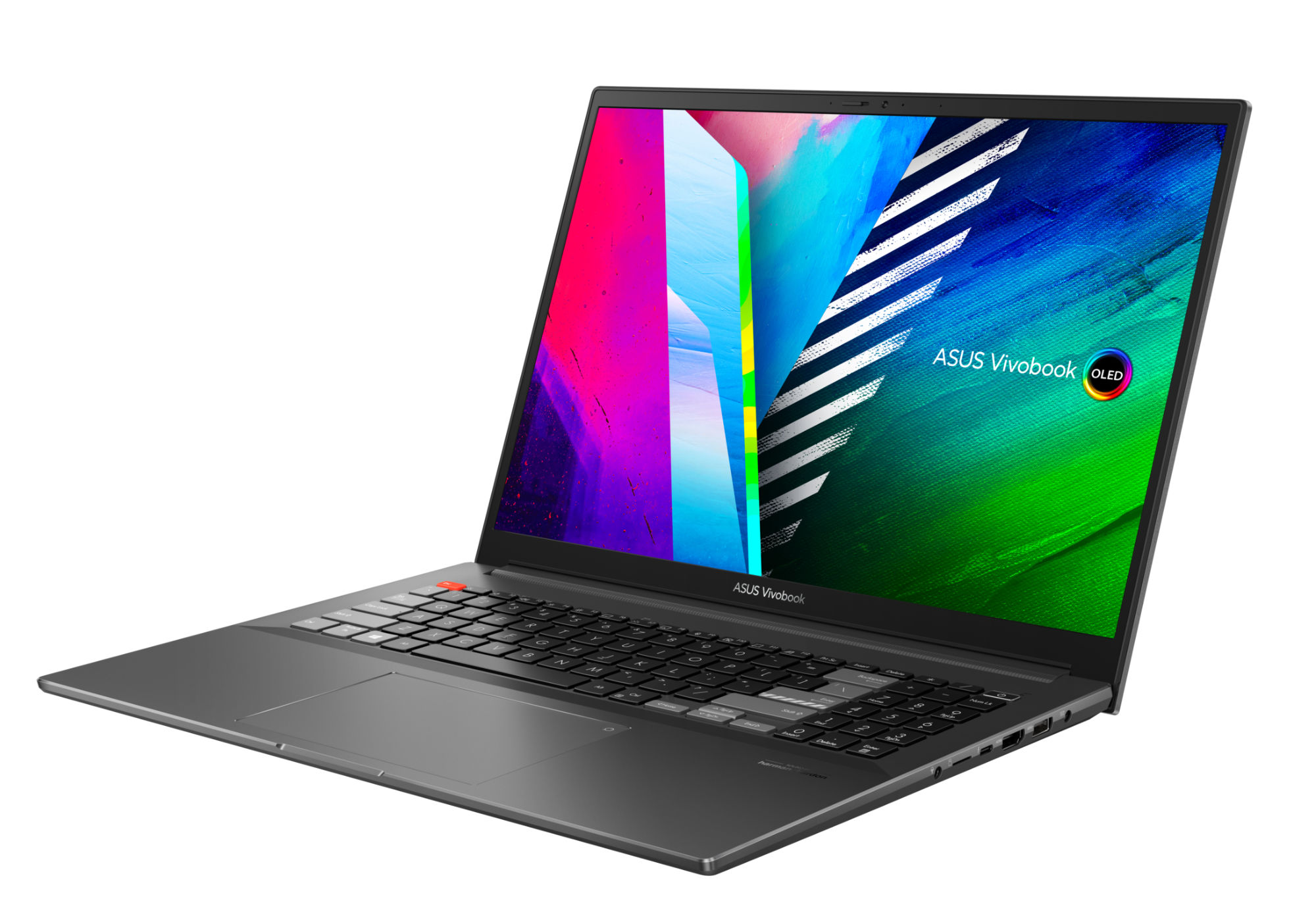 Asus utilise sur cette référence une dalle OLED avec un taux de rafraîchissement de 60 Hz. La luminosité maximale est annoncée à 550 cd/m². L'écran propose des angles de vision de 178°. Il supporte le profil colorimétrique sRGB à 133%. La dalle couvre également l'espace colorimétrique plus étendu du DCI-P3 à 100% pour un rendu parfait des couleurs. L'écran est également certifié VESA DisplayHDR 500 True Black.