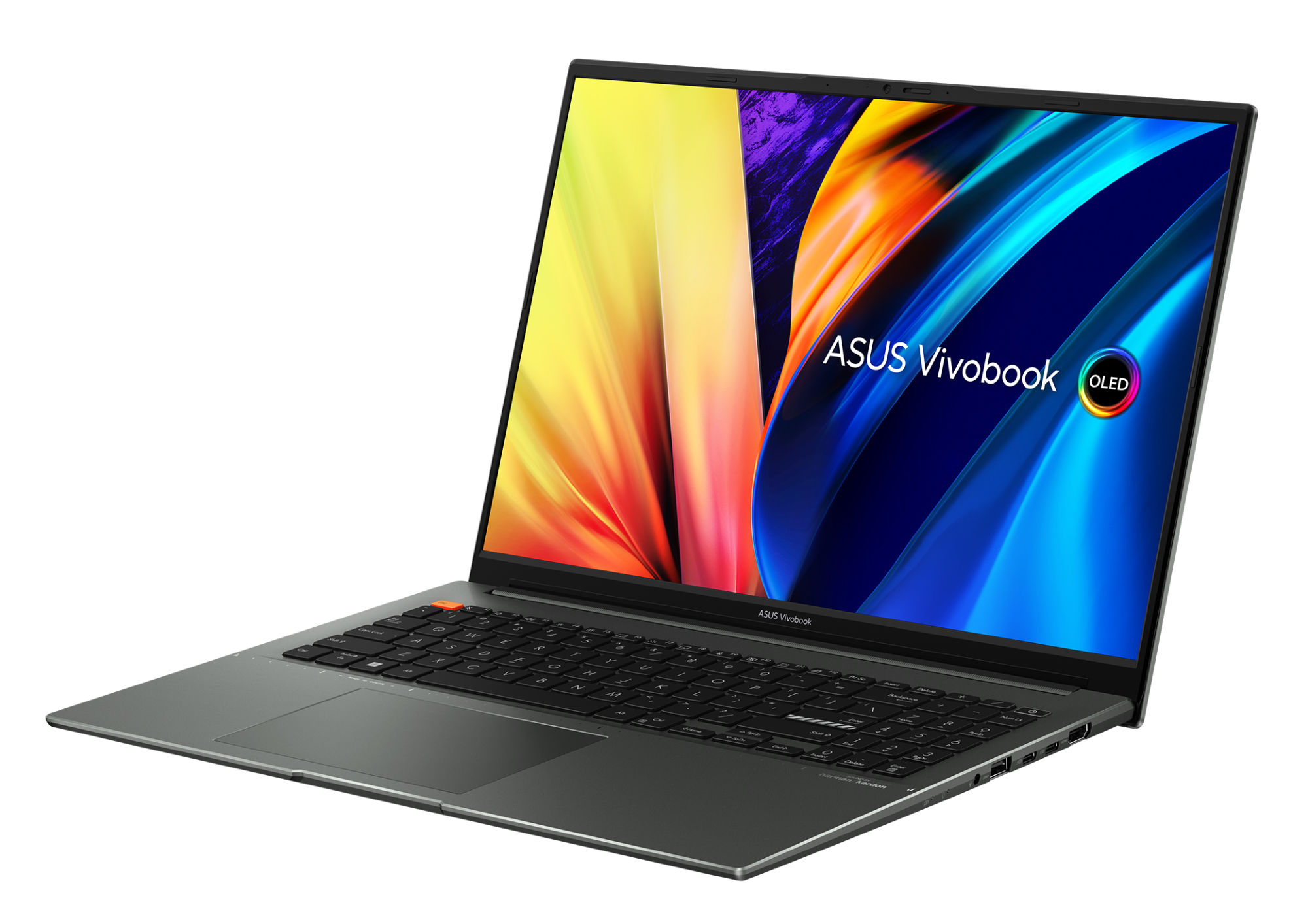Asus utilise sur cette référence une dalle OLED avec un taux de rafraîchissement de 60 Hz. La luminosité maximale est annoncée à 550 cd/m². L'écran propose des angles de vision de 178°. Il supporte le profil colorimétrique sRGB à 133%. La dalle couvre également l'espace colorimétrique plus étendu du DCI-P3 à 100% pour un rendu parfait des couleurs. L'écran est également certifié VESA DisplayHDR 500 True Black.