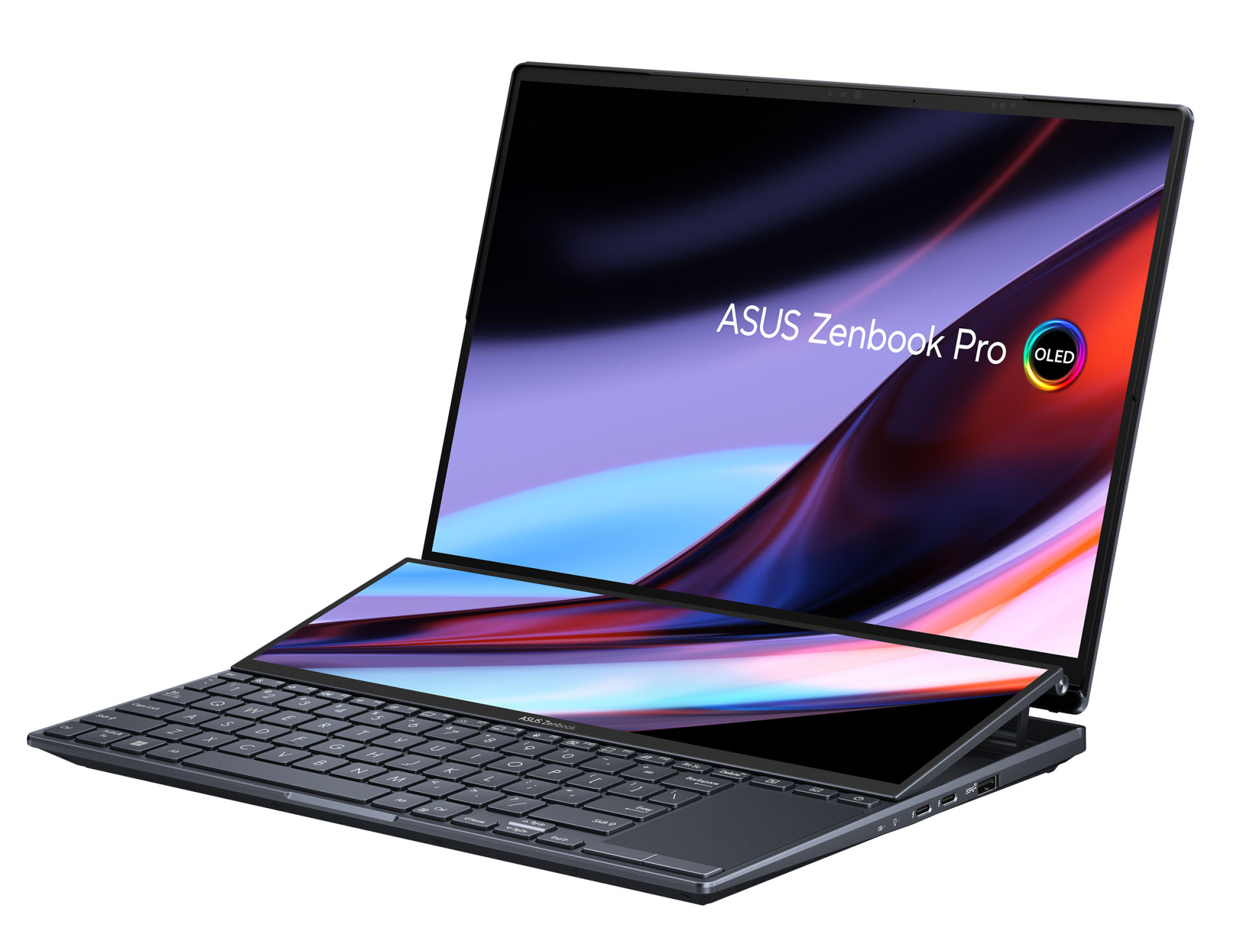 Asus utilise sur cette référence une dalle OLED avec un taux de rafraîchissement de 120 Hz. La luminosité maximale est annoncée à 550 cd/m². L'écran propose des angles de vision de 178°. La dalle couvre également l'espace colorimétrique plus étendu du DCI-P3 à 100% pour un rendu parfait des couleurs. L'écran est également certifié VESA DisplayHDR 500 True Black.