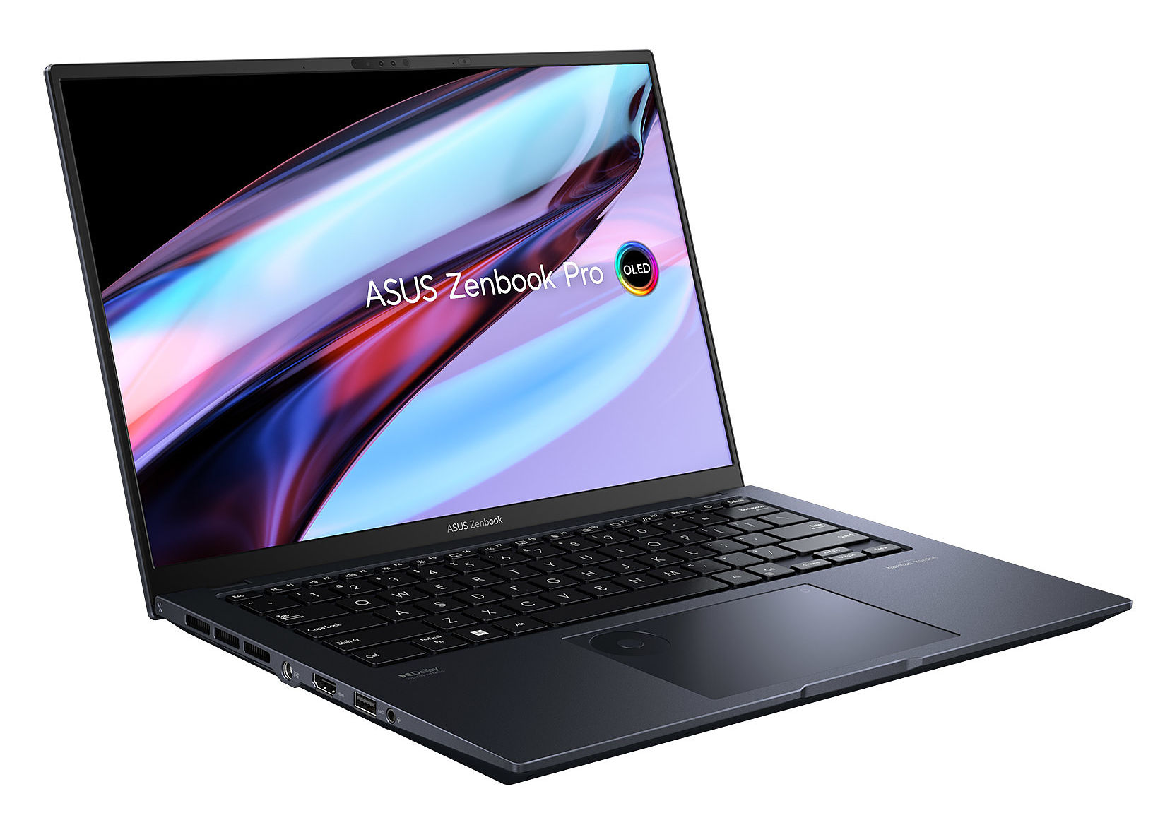 Asus utilise sur cette référence une dalle OLED avec un taux de rafraîchissement de 120 Hz. La luminosité maximale est annoncée à 550 cd/m². L'écran propose des angles de vision de 178°. La dalle couvre également l'espace colorimétrique plus étendu du DCI-P3 à 100% pour un rendu parfait des couleurs. L'écran est également certifié VESA DisplayHDR 500 True Black.