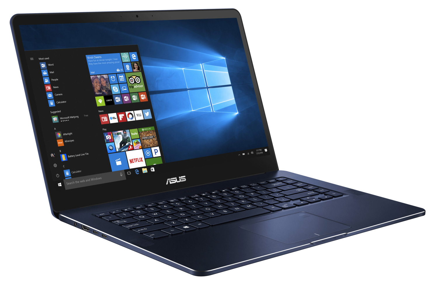 Avec un capteur frontal de 0.3 Mpx, la webcam n'offre pas une qualité exceptionelle mais suffisante pour un usage ponctuel. Ce PC propose également un module Wi-Fi 802.11 b/g/n/ac pour surfer sur Internet à grande vitesse. En complément, la puce Bluetooth 4.1 permet de synchroniser vos appareils mobiles sans-fil et d'échanger rapidement vos fichiers multimédia. Vous apprécierez le confort du clavier rétro-éclairé pour un travail en silence et un confort lumineux, même lumière éteinte ! Certains apprécieront le lecteur d'empreintes pour sécuriser durablement leurs données et facilité l'accès à leur PC. Sécurisez également votre vie numérique grâce à la puce TPM (Trusted Platform Module), un composant matériel grâce auquel les clés et données chiffrées peuvent être sauvegardées, une option indispensable pour garantir la protection de vos données. Asus annonce une autonomie pouvant atteindre jusqu'à 14h00 d'utilisation selon votre utilisation.