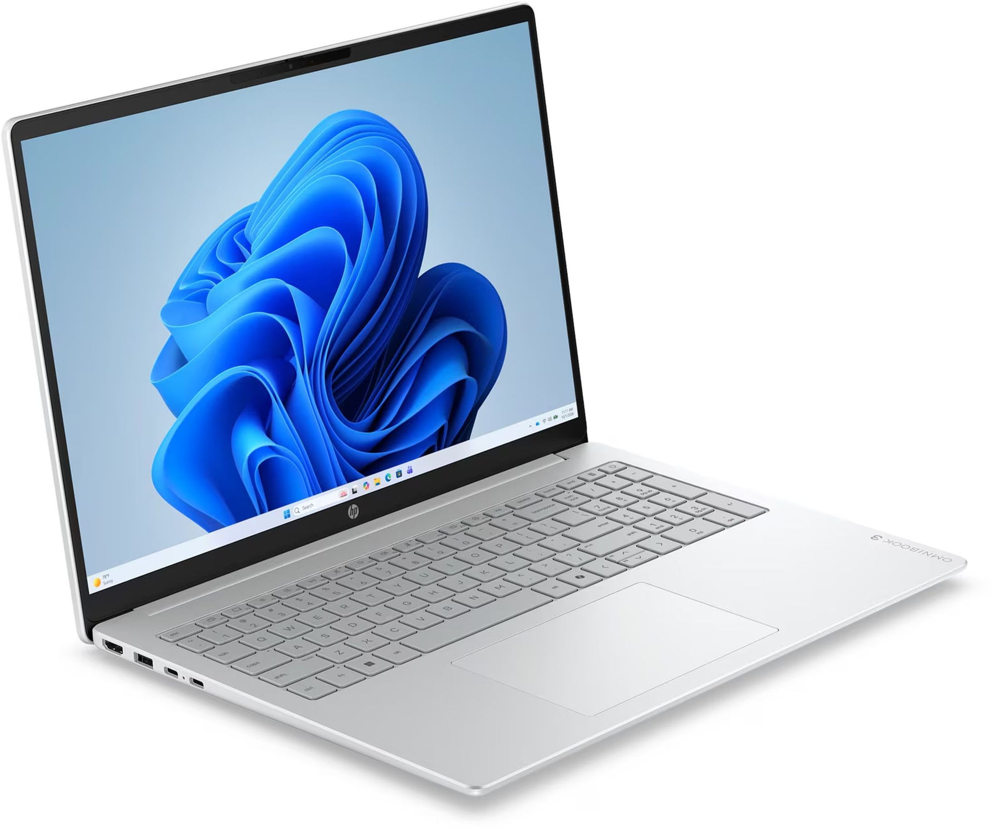 La fiche de ce modèle annonce une composition plastique / métal, ce qui colle bien à ce que la presse décrit sur la gamme OmniBook 3 : un design sage, glacier silver, sérieux dans sa présentation, mais sans recherche “luxe” particulière. Les retours de test évoquent un ressenti globalement solide, peu de flexion au niveau du clavier et du capot, ainsi qu’une charnière jugée stable. C’est exactement le type de finition qu’on attend d’un portable grand public bien né : pas spectaculaire, mais rassurante si vous cherchez un outil de travail simple et propre.