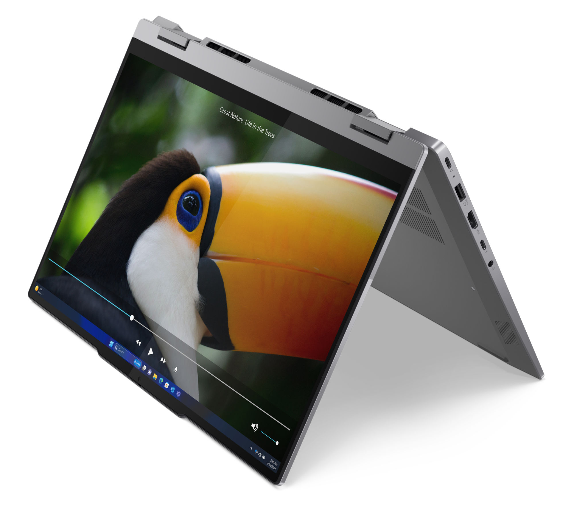 – Connectique complète : 2 ports USB-A, 2 ports USB-C dont un à la norme 4.0 / Thunderbolt, HDMI 2.1, port Ethernet RJ45, lecteur de carte microSD et prise casque. Pour un 14" convertible, la présence d’un RJ45 est un vrai plus en contexte pro (salles de réunion, bureaux câblés).
