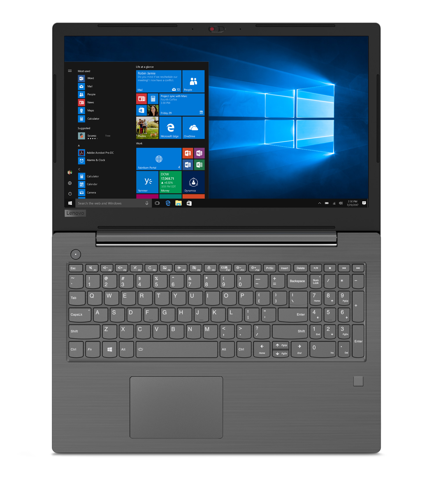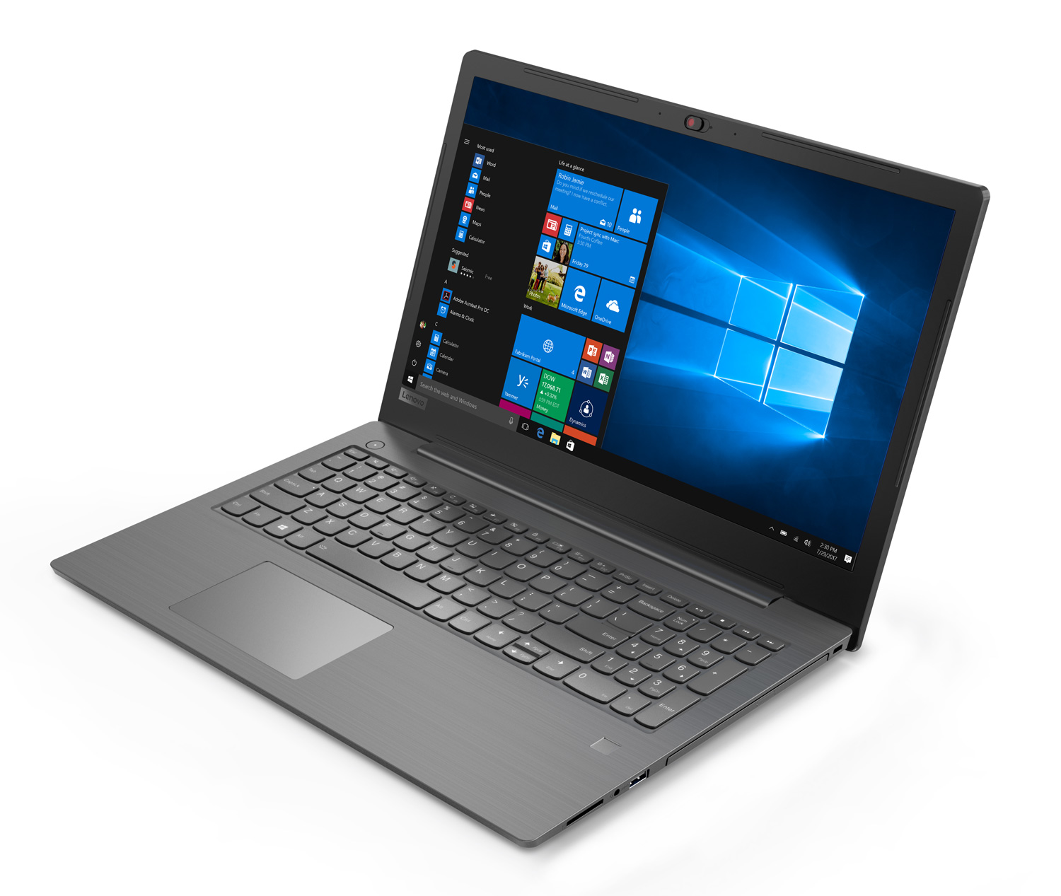Avec sa webcam située au dessus de l'écran, l'appareil supporte les appels vidéo HD pour vos vidéoconférences depuis votre messagerie instantanée. Vous pourrez vous connecter à votre réseau sans-fil très facilement grâce à sa puce Wi-Fi 802.11 b/g/n/ac. Le PC se dote également d'une connectivité Bluetooth 4.1 pour le partage de fichier entre appareils. Son large touchpad et son clavier à touches séparées vous offrent un vrai confort d'utilisation. Certains apprécieront le lecteur d'empreintes pour protéger efficacement leurs données et facilité l'accès à leur PC. Protégez également vos fichiers numériques à l'aide de la puce TPM (Trusted Platform Module), un composant matériel grâce auquel les clés et données chiffrées peuvent être sauvegardées, une option indispensable pour améliorer la protection de vos données. Lenovo annonce une autonomie pouvant atteindre 6h00 de fonctionnement selon votre utilisation.