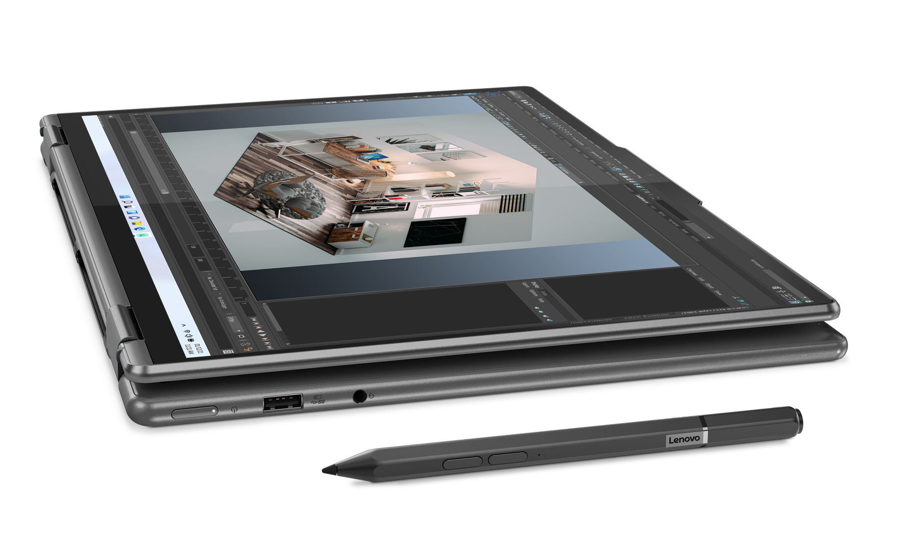 Lenovo propose avec ce PC portable un stylet actif. Contrairement à un stylet passif, celui-ci embarque des composants électroniques lui permettant d'être sensible au toucher et à la pression exercée sur l'écran. C'est l'outil idéal pour les métiers créatifs (graphiste, designer...). Le stylet Lenovo est vendu avec l'ordinateur.