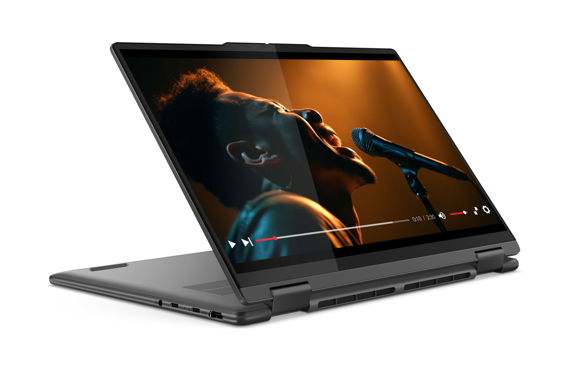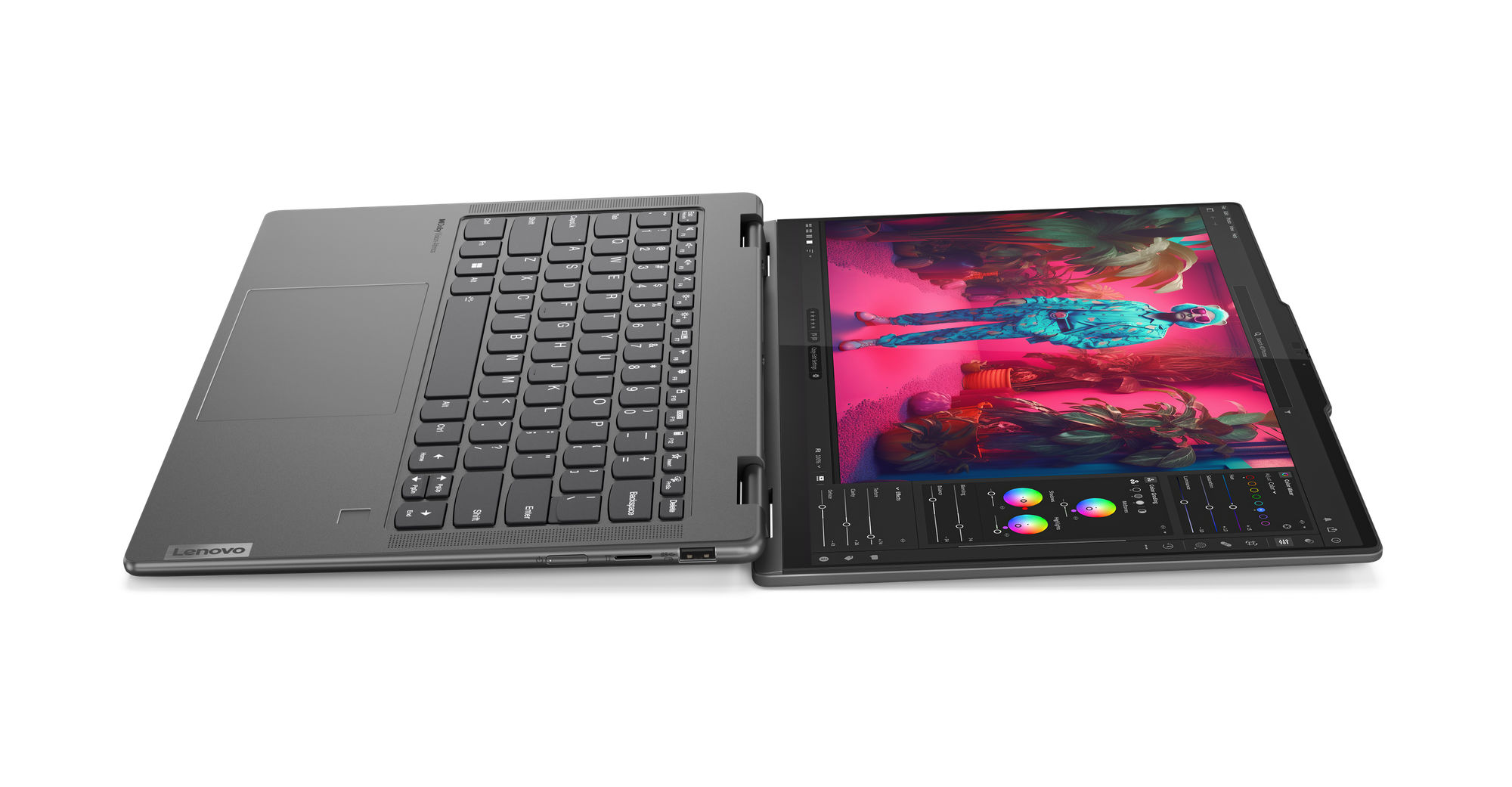 Lenovo utilise sur cette référence une dalle OLED avec un taux de rafraîchissement de 60 Hz. La luminosité maximale est annoncée à 400 cd/m². L'écran propose des angles de vision de 178°. La dalle couvre également l'espace colorimétrique plus étendu du DCI-P3 à 100% pour un rendu parfait des couleurs. L'écran est également certifié VESA DisplayHDR 500 True Black.