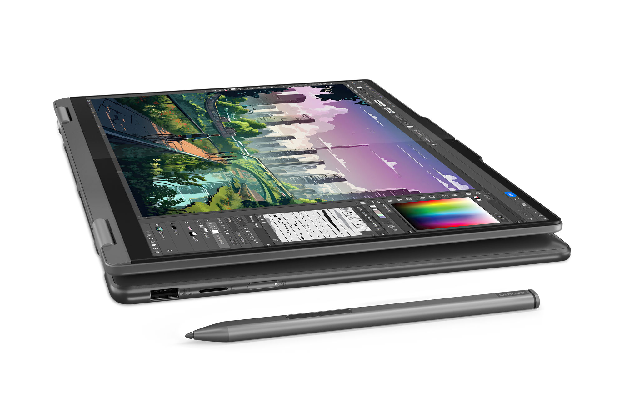 Lenovo propose avec ce PC portable un stylet actif. Contrairement à un stylet passif, celui-ci embarque des composants électroniques lui permettant d'être sensible au toucher et à la pression exercée sur l'écran. C'est l'outil idéal pour les métiers créatifs (graphiste, designer...). Pour en profiter, il faudra acquérir le stylet séparément puisque celui-ci n'est pas vendu avec l'ordinateur.