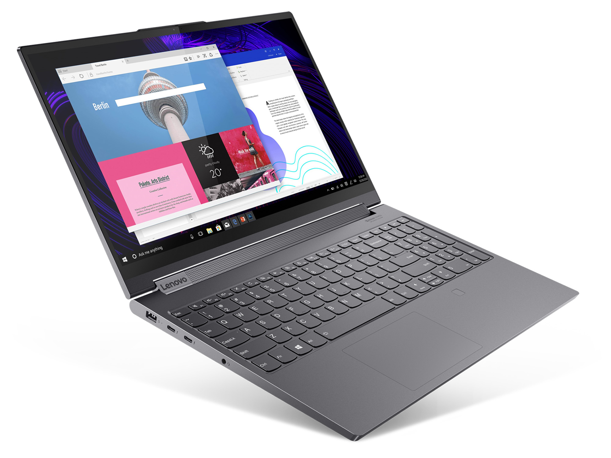 Le PC fixe de chez Lenovo propose 2 ports USB-C. Un des ports USB-C exploite également les fonctionnalités Thunderbolt d'Intel offrant des vitesses de transfert plus élevées que la norme USB.