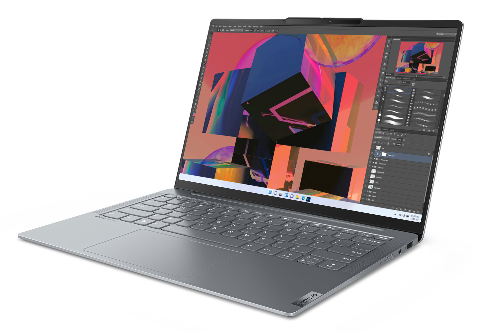 Lenovo utilise sur cette référence une dalle OLED avec un taux de rafraîchissement de 60 Hz. La luminosité maximale est annoncée à 400 cd/m². L'écran propose des angles de vision de 170°. La dalle couvre également l'espace colorimétrique plus étendu du DCI-P3 à 100% pour un rendu parfait des couleurs. L'écran est également certifié VESA DisplayHDR 500 True Black.