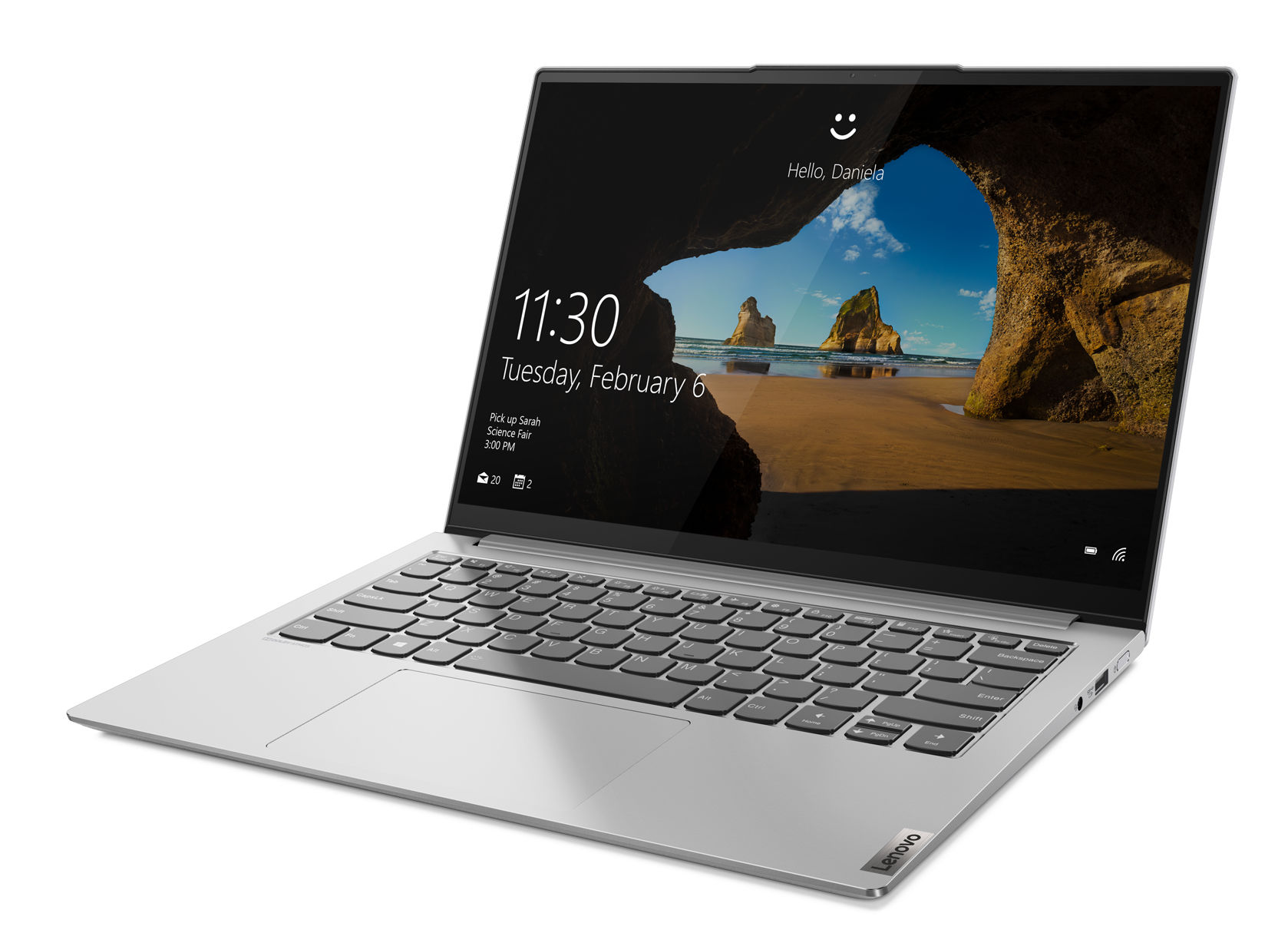 Cet ordinateur portable ne dispose pas de lecteur d'empreintes digitales. La webcam propose cependant la reconnaissance faciale par capteur infrarouge qui offre les mêmes fonctionnalités que la reconnaissance d'empreintes. Ce dispositif permet de s'authentifier avec rapidité sans avoir à saisir son mot de passe.