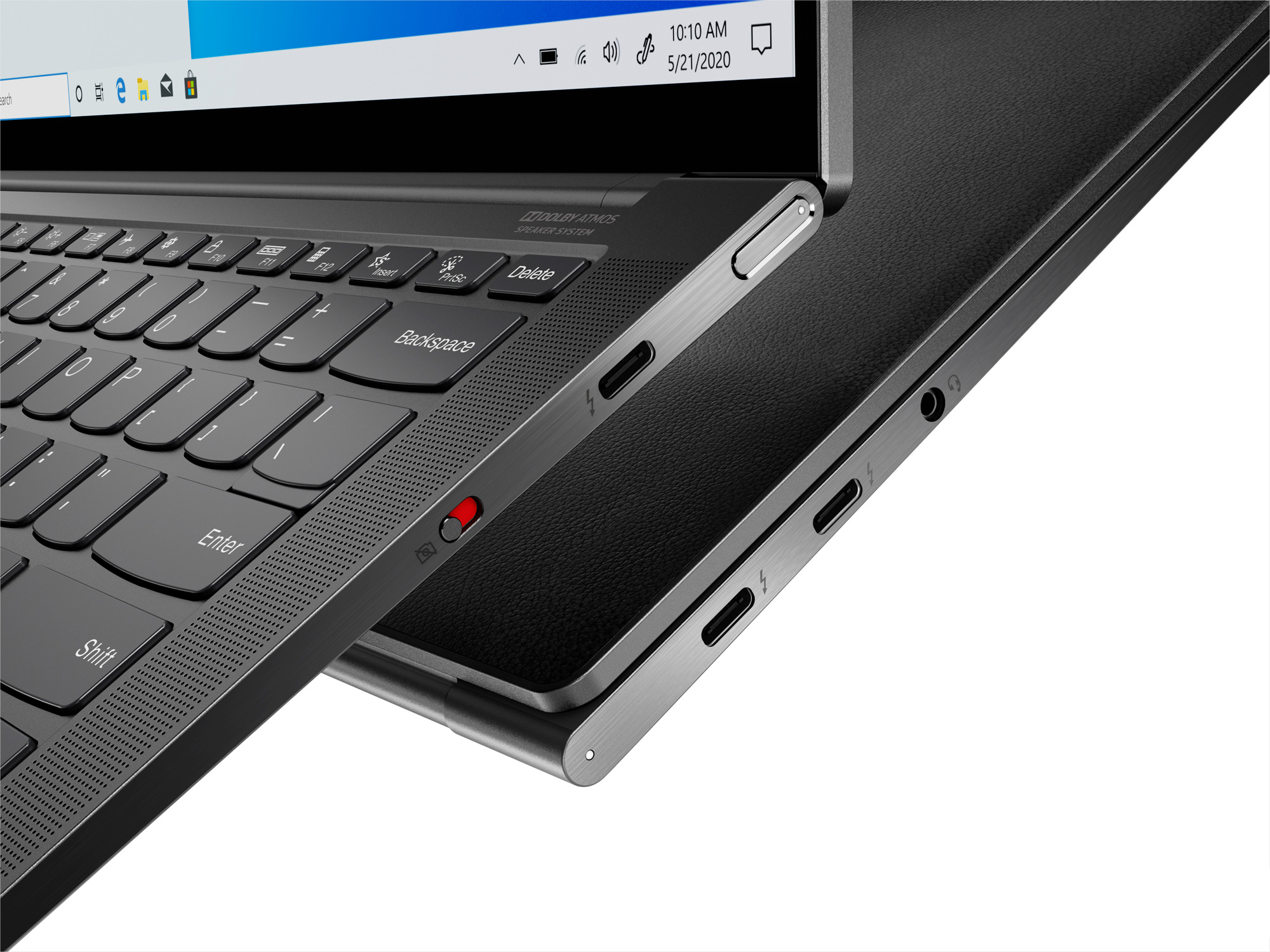 Le PC fixe de chez Lenovo propose 3 ports USB-C. Un des ports USB-C exploite également les fonctionnalités Thunderbolt d'Intel offrant des vitesses de transfert plus élevées que la norme USB.