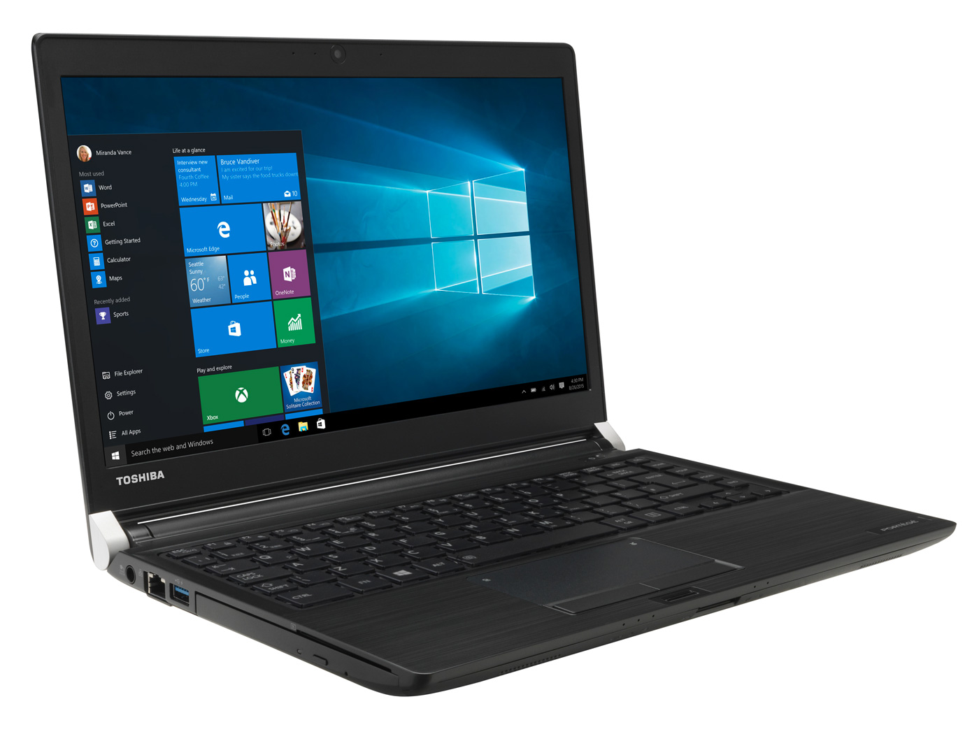 Le Toshiba Portégé A30-C-1DP propose un affichage de 13.3'' avec une résolution HD de 1366 x 768 pixels, il est idéal pour les étudiants ou professionnels en situation de mobilité régulière. Traité avec une surface mate, son écran à pour objectif de réduire les reflets parasites et les effets miroir.